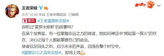 今日《王者荣耀》官方官宣露娜新皮肤“启示之音”,并放出了预热海报,白发女神搭配金色发饰可以说气质绝佳。官方表示,露娜的这款新皮肤来自普罗米修斯的神话故事。