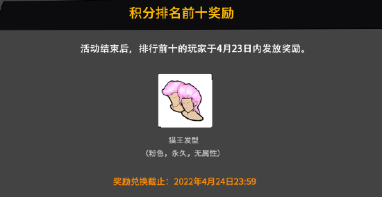 6。 活动结束后,最先达到最高积分的前十名玩家可以获得额外奖励,该奖励于4月23号内发放。