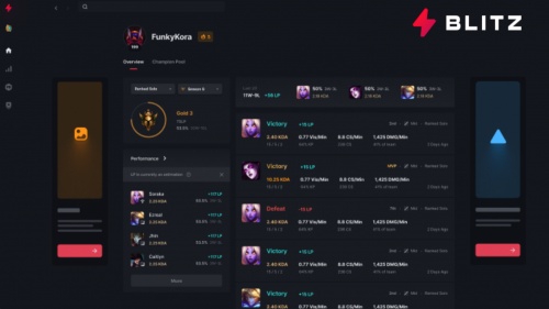 《Blitz速到师》目前支持《英雄联盟》(League of Legends)、《无畏契约》(Valorant)、《云顶之弈》(Teamfight Tactics)、《符文之地传说》(Legends of Runeterra)、《堡垒之夜》(Fortnite)共5款风靡全球的游戏。根据艾瑞咨询《2021年中国电竞行业研究报告》中国玩家有接近68%的用户希望可以通过看直播、看短视频等手段来提升游戏水平,《Blitz速到师》就刚好可以满足国内玩家的需求。针对每一款不同类型的游戏,都有针对游戏特性和玩家需求的功能,切切实实的为玩家提供个性化、定制化、专业化的辅助和数据分析。让玩家提高游戏表现的同时还能获得专业化的指导。