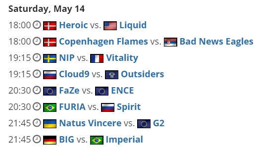 首轮对阵中最精彩的要数FaZe和ENCE的对决,不过这并不是首轮对决中唯一一个前十名队伍的内战,世界排名第四的Cloud9遇上了排名第十的Virtus.pro,排名第二的NaVi对上了世界排名第六的G2。