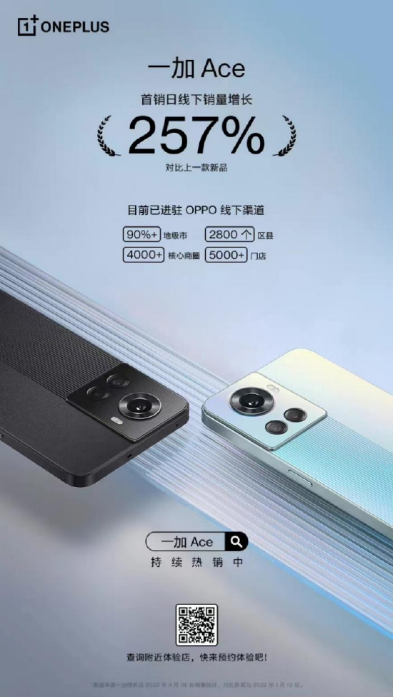 此前在四月份,一加正式推出了全新的系列机型——一加 Ace。新机一经推出即广受媒体与用户好评,京东平台商品好评率高达96%,首销之日便拿下OPPO商城、京东、天猫手机单品销量和销售额双冠军,线下首销日销量增长率更是达到了257% 。在即将到来的618购物节里,一加也将为消费者推出竞争力十足的一加 Ace 竞速版,满足用户对于性能与游戏上的更高诉求。