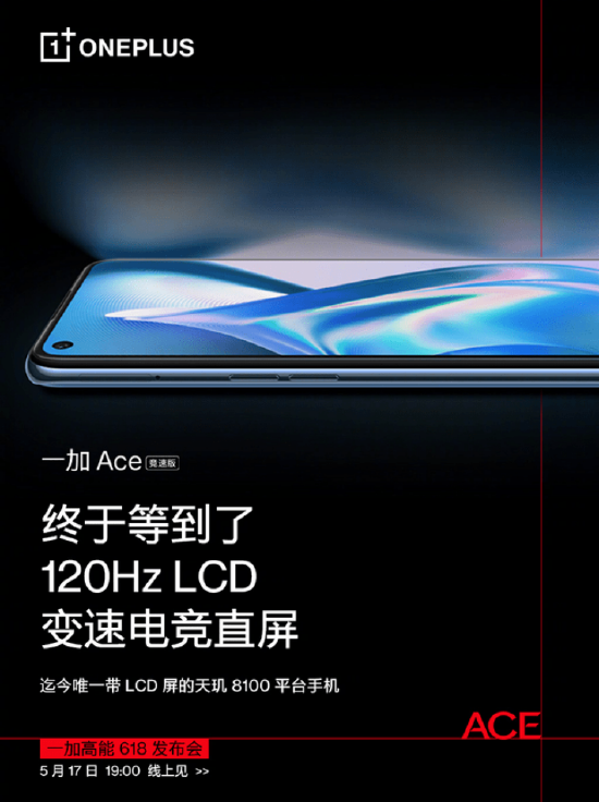 一加Ace竞速版将在5月17日19:00正式发布,大家可以通过一加官网、一加手机官方微博等渠道了解更多新品信息。