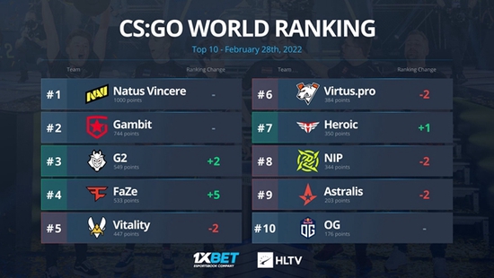 IEM卡托维兹2022圆满结束,HLTV公布了本周的最新世界排名。