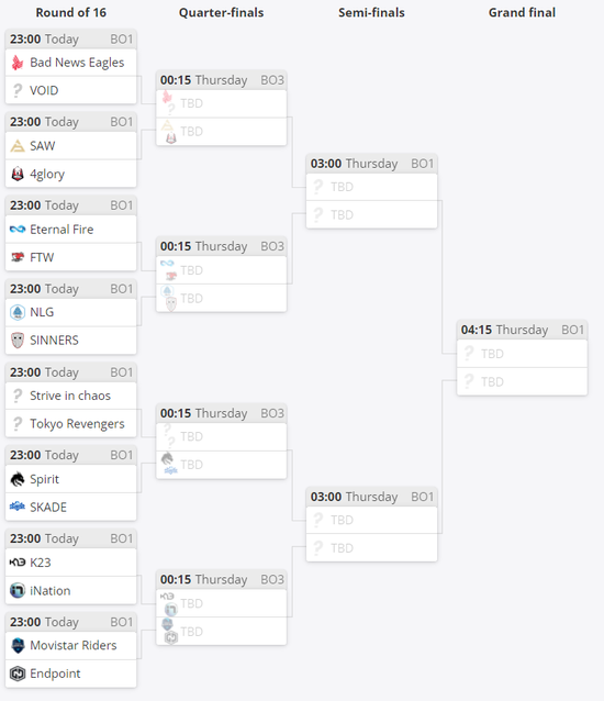 欧洲区RMR第二次公开预选赛的16强对阵如下: