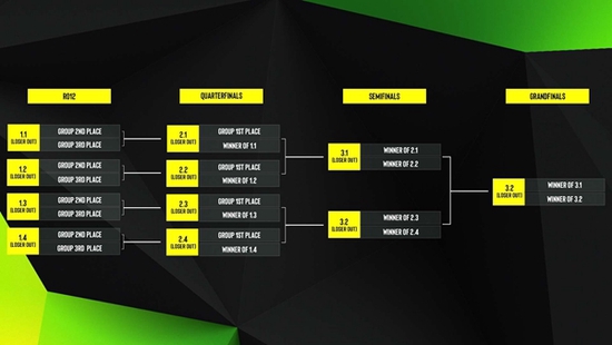 赛制:BO3单淘,小组第二、第三将先行较量,胜者将与小组第一角逐。最后的决赛将采用BO5。