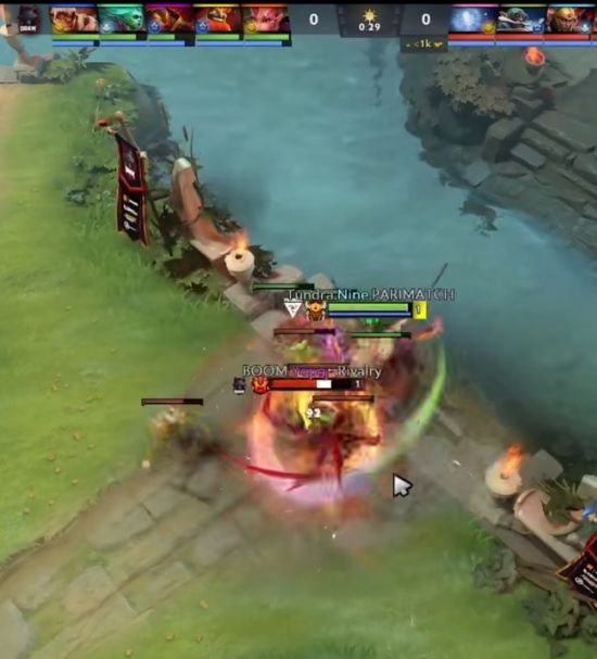 之前军团指挥官的被动技能:勇气之霎在对英雄触发时,存在会有额外75点伤害的BUG,在前几日迪拜邀请赛总决赛BO5第一局的比赛中,Tundra的二号位Nine选出中单军团,对阵BOOM二号位Yopaj的火猫时,这项BUG还没有被修复,虽然火猫打军团本就是一个劣势对线,但这个被动更加给军团增添了巨大的优势,第一波兵线军团两次被动触发就打掉了火猫将近半血,之后Yopaj的火猫也是对线崩盘,整场都没有声音。