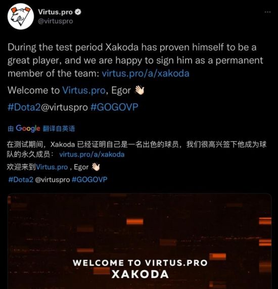近日,Virtus.pro官宣了自家战队的五号位替补:19岁的新人小将Xakoda,将正式转正加入队伍。