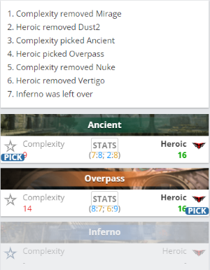 Heroic 2-0 Complexity(Ancient 16-9;Overpass 16-14;Inferno)