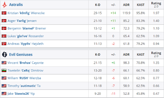 Astralis 2-0 EG(Vertigo 16-9;Overpass 16-8;Nuke)