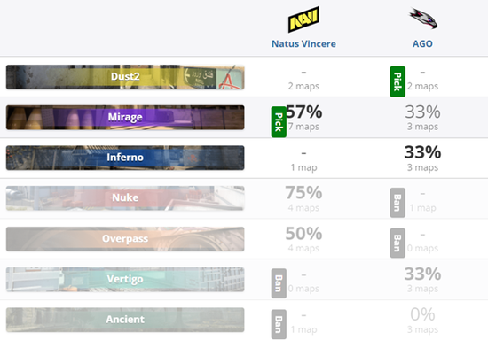 NaVi 2-0 AGO (Dust2 16-1;Mirage 37-34 )