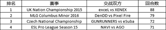 此前EPL上单张地图最高的比分是在EPL S13决赛上创造的,当时的Gambit和Heroic在决胜图Train上激战四个加时,最终Heroic技高一筹笑到最后,以28-26的比分拿走这张地图的胜利。而放眼整个CSGO历史,NaVi和AGO的这场比赛也足够载入史册,排在历史第四位。历史上回合数最高的四场对局分别是: