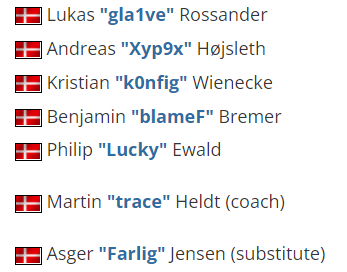 之前提到了Astralis和NIP都做了一些改变,他们需要从PGL斯德哥尔摩Major的阵容中保留出一个三个核心阵容。和预想的一样,丹麦人将Lucky作为活跃选手保留为队伍核心,将Farlig列为替补。此外由于Valve的禁令,他们将trace列为队伍教练而不是ave。