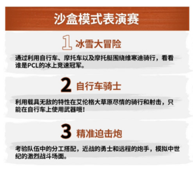 自行车骑士:利用载具无敌的特性,在艾伦格大草原尽情的骑行和射击,只能在自行车上使用武器;