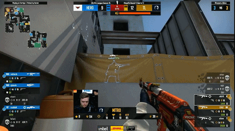 瞬间刷屏拿下手枪局后Heroic快速拿到两分,长枪局Heroic尝试主动前压加上B区首创的三架轻松拿到人数优势,放下雷包的Liquid疲于和回防周旋憾失多个残局,一轮手枪互翻后比分来到4-3。