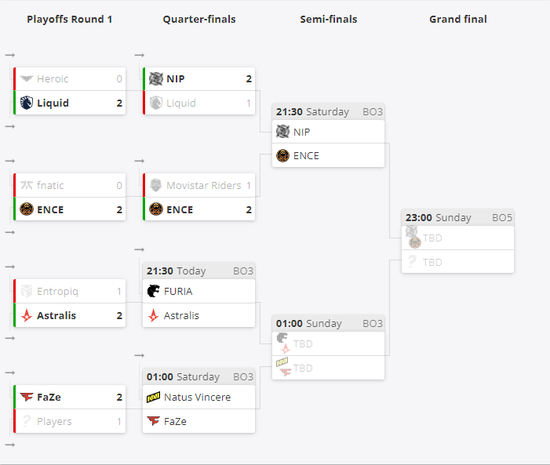 经过第三日的两场鏖战,ENCE和NIP笑到了最后,成功会师半决赛。