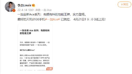 一加Ace新品将于4月21日正式发布,敬请期待。
