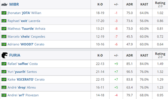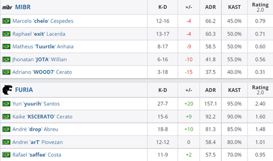 本场比赛由MIBR对战FURIA,传奇组的席位将在本场比赛中产生。MIBR在Nuke的防守方尚能与FURIA一战,而当FURIA来到Nuke的防守方时MIBR便寸步难行,这样低迷的状态MIBR也带到了图二,面对手感全开的FURIA,他们束手无策,只能拱手让出传奇组的席位。