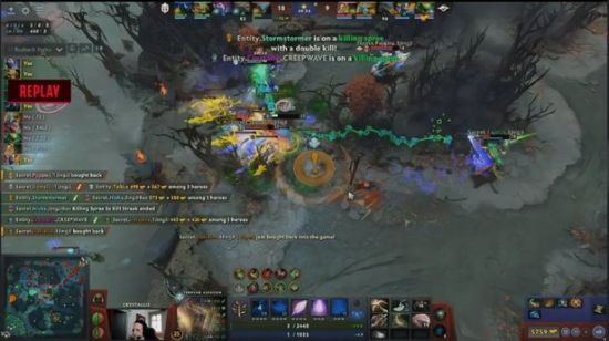 然而26分钟混沌上头直接跳到了Entity高地下想杀人,结果自己被打出不朽盾,随后Entity四个大招都甩了出来,Secret复活的混沌和来支援的孽主大圣都一起阵亡。