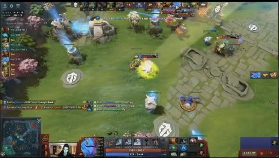 16分钟Secret推下路二塔,挂在树上的大圣直接先手配合混沌击杀了Entity双辅助,Entity三核姗姗来迟变成了葫芦娃救爷爷,最终Entity五人团灭,Secret零换五之后推掉了下路二塔,团队经济一下子就领先了8K。