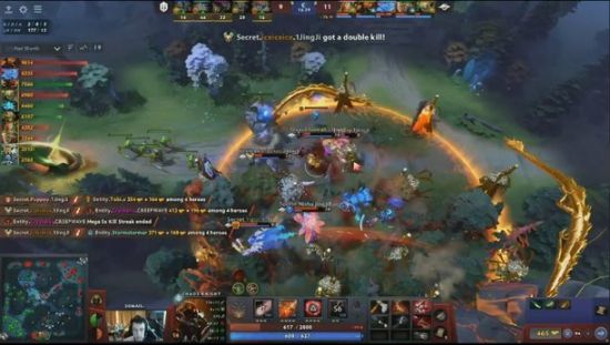 30分钟双方遭遇,Secret混沌BKB一开,孽主笛子一开,Entity完全打不出伤害,混沌开大输出配合帕克大招的控制,Secret未阵亡一人而Entity五人阵亡,Secret再破掉了中路高地后撤走,此时Secret的团队经济已经领先了2W6。