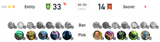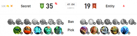 Entity天辉,选择血魔蓝猫沙王三核,天怒和巫妖辅助。Secret夜魇,选择混沌帕克孽主三核,大圣和小鹿辅助。