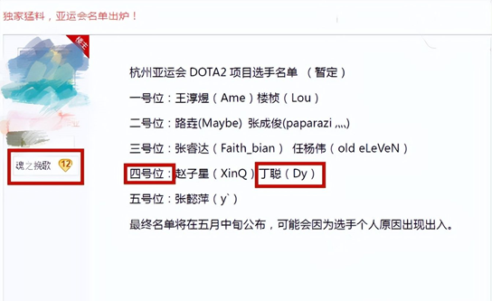 随着2022杭州亚运会的日子越来越近,电竞项目作为首次进入亚运会大家庭的项目,各个项目的国家队名单备受关注。近日,在贴吧上有人曝光了疑似DOTA2的亚运会国家队大名单。从名单上可以看出,各个位置上给到了两位选手竞争,按照之前传统体育的国家队组成步骤,最终的正式选手会将由主教练决定,但在本次曝光的名单中却并不包含主教练人选,不禁让人浮想联翩。中国战队教练的人选还未定,纵观整个中国DOTA圈,有众多人选都能胜任这个位置。