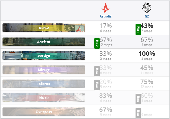 G2 2-1 Astralis (Dust 16-10; Ancient 7-16;Vertigo 19-17)