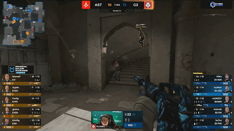 被G2个人能力各种牵扯的A队再也受不了了,选择一波不讲道理的rush B,JACKZ久旱逢甘在B点坐收突烟的土匪,配合m0NESY光速终结了比赛。比分来到16-10。