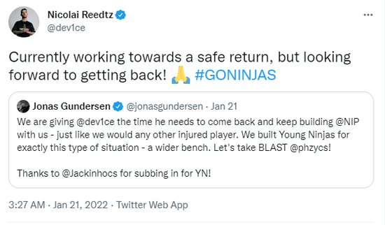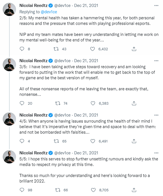有人猜测device试图回到Astralis,他直接在推特发表声明驳斥这种观点: