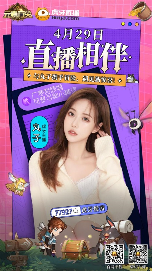 肉鸽+卡牌的策略冒险手游《元素方尖》,将于4月29日全渠道首发上线!首发当日,虎牙人气主播“丸子”将化身“最美制作人”,以主持人的身份与《元素方尖》策划面对面交流。作为常年稳居虎牙人气榜的女主播,“丸子”不仅有着清纯的面容、魔鬼般的身材,更凭借好听的歌声和可爱趣味的解说方式,获得了超越13万的订阅量,可谓颜值与实力并存!