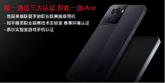 凭借强悍配置与出色的游戏实力,一加 Ace获得泰尔实验室的游戏手机认证,并且通过了首届英雄联盟手游职业联赛比赛用机硬件测试认证,成为了首届英雄联盟手游职业联赛推荐用机;此外一加 Ace 还通过了和平精英职业联赛技术实验室赛事环境认证。