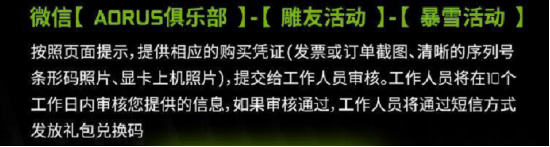 2、上传购买技嘉 GeForce RTX 3070 及以上显卡的电脑整机的相关订单截图或发票等凭证,经技嘉客服审核无误后约10个工作日内通过预留的短信发放礼包兑换码;