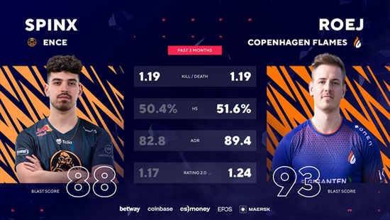 BLAST春季复活赛欧洲区,第一场对决由ENCE对阵Copenhagen Flames,在Vertigo的防守方累积到11分优势的ENCE没给CPH Flames丝毫喘息时间,下半场起出AK后以几波抱团的进攻迅速赢下图一;没有放弃的CPH Flames立马让图一的剧本在对手的选图Mirage里上演扳回一城;决胜图Ancient,先做CT的ENCE再次靠着Snappi和Spinx的主动前压拿到10分,攻防转换后以迅猛的攻势击败CPH Flames获得首胜。