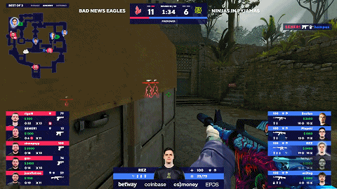 手枪局NIP暴力提B,枪法撕裂防线赢下手枪局。来到长枪局,BNE防守极为主动,黑屋与中路同时前压,NIP默认被瓦解,同时甜甜圈一人防住A区一波,BNE队标燃起烈火!被连拿11分的NIP似乎摸清了CT站位习惯,一边爆弹骚扰一边反清,上半场拿到4分。