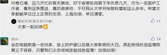 “因为玩家的身份我们聚集在一起,也因为使命与担当,我们中的一些人正为保障更多人的健康而冲锋在前,”正如雷蛇微博文案里说的那样,许多玩家的身份不止一面,在我们享受丰富有趣的游戏之时,也有另一帮人化身为抗疫勇士,为笼罩在疫情阴霾之下的魔都,带来希望的色彩。