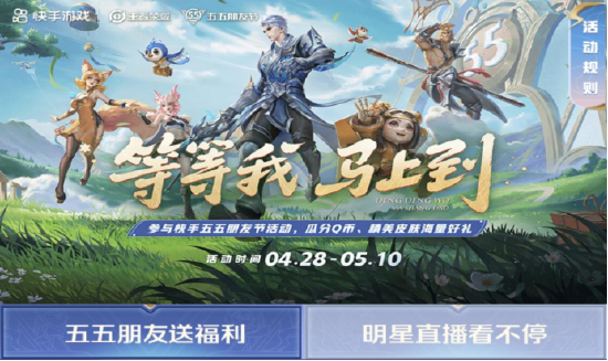 《王者荣耀》“五五朋友节”即将落下帷幕,这个专属于王者玩家的节日少不了朋友之间的组队开黑,更少不了在快手看明星王者直播。