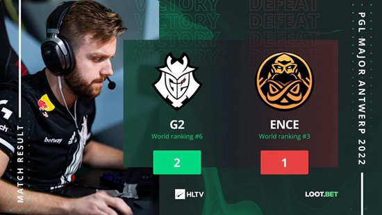 2022 PGL安特卫普Major挑战者组第二日,第二场2-0组的对决在ENCE与G2之间展开。今日m0NESY在Dust2上的状态极佳,带队先下一城,随后Spinx在Ancient上完全接管比赛,将对局推入决胜图,最终Aleksib在mirage贡献出神勇发挥,帮助G2战胜对手顺利晋级传奇组。