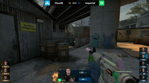 来到Cloud9主动选择的Vertigo,Imperial先做防守方。拿下三分之后,Cloud9凭借Hobbit的B点单摸和默契的A点进攻一路拿分,Imperial这边常规守不住只能选择前压或者抓timing反摸,反摸效果不错半场结束Cloud9仅仅领先一分。