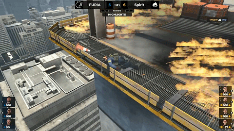 下半场攻防互换,Spirit再度赢下手枪局的胜利,他们抓住机会成功将比分差距进一步拉开,12-7。关键局yuurih成功突破B区,剩余三名CT直接选择保枪。次局双方在中路展开激烈交火,回合中期s1ren与degster的钢铁A区再度将FURIA打入谷底,Spirit乘胜追击,五回合连胜终结比赛,比分16-8。