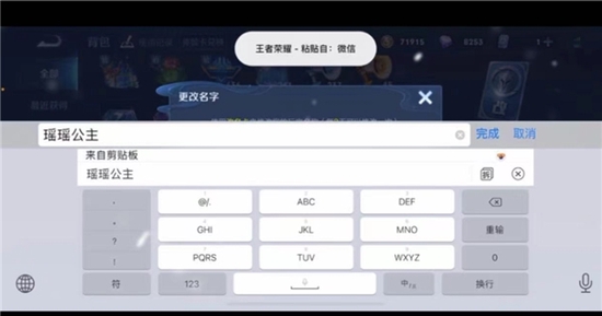 打开王者荣耀,准备一张改名卡进行改名,将复制好的名字粘贴后完成改名;