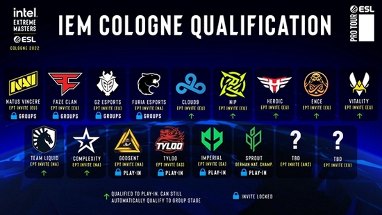 IEM官方推特最近公布了IEM科隆参赛队伍的情况,NaVi、FaZe、G2、FURIA锁定了IEM科隆小组赛的名额,GODSENT、TYLOO、Imperial、Sprout锁定了Play-in阶段的名额。