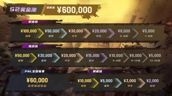 PPL S2总奖金¥600,000,其中不仅有对应名次的赛果奖励,还包含完美平台为战队提供的丰厚扶持基金,帮助更多战队进行日常运营、训练,使其逐渐步入正轨,减少后顾之忧。