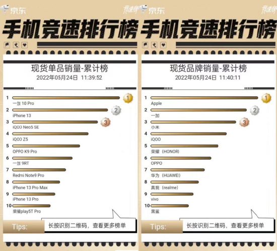一加Ace、一加9RT和一加10 Pro发布后,便受到了广大用户的喜爱。5月23日京东618开启后,一加 10 Pro便登上了京东竞速排行榜现货单品销量累计榜第一,同时一加成为现货品牌销量累计榜安卓第一。一加 Ace、一加Ace 竞速版、一加 9RT预售期间也数次登上预售单品销量排行榜,销售火爆。