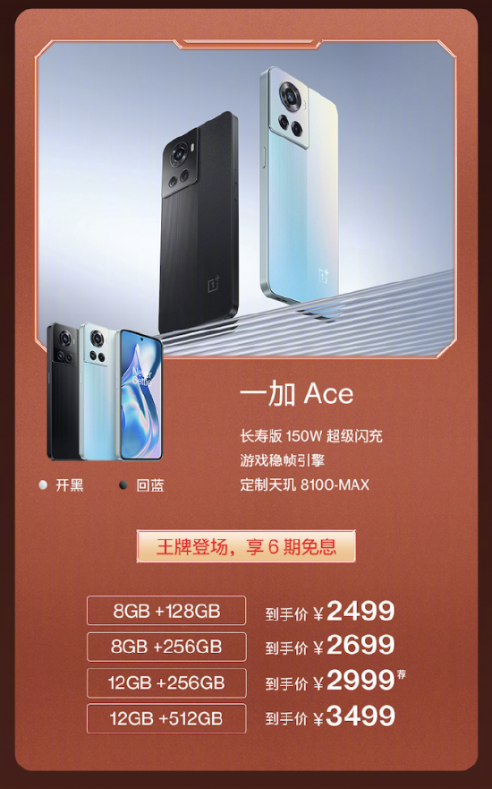 性能王牌一加Ace,搭载定制天玑8100-MAX芯片,长寿版150W超级闪充和HyperBoost游戏稳帧引擎,真正做到充电快,游戏稳,性能狠。618期间,2499元起即可享受畅爽游戏娱乐体验,还可享6期免息。