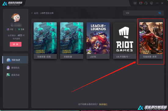 2、登录流星加速器客户端,搜索“英雄联盟”,将英雄联盟越南服添加至游戏列表