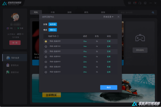 3、可以选择一键加速,也可以进入区服节点列表选择任意线路,即可加速