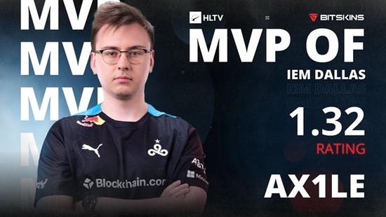 随着在总决赛中3-0击败ENCE,Cloud9成功捧杯IEM达拉斯,HLTV也随之公布了本届赛事的MVP选手,Ax1Le凭借对战局至关重要的贡献和出色的数据,赢得了自己生涯第一个线下赛MVP。