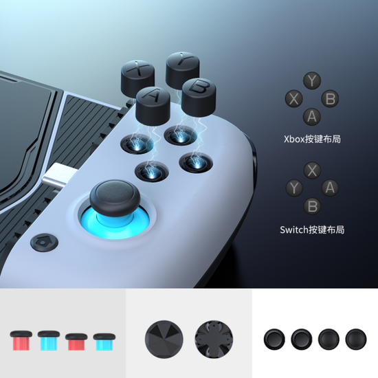 而且,对于按键设计采用了开放式理念,玩家可以对A/B/X/Y、方向键、高低摇杆,分别拆卸更换,小鸡也会随手柄赠送一套按键、摇杆等。