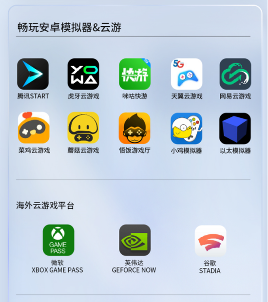 当然,少不了现在火热的云游戏,X3能够兼容很多国内外云游戏平台,国内像腾讯START、虎牙云游戏、咪咕快游等,海外像微软XGP、英伟达GEFORCE NOW、谷歌STADIA等。 玩家可以玩到《仙剑7》《最终幻想15》《怪物猎人世界》《消逝的光芒》等,都是大作级别。喜欢模拟器的玩家,X3也可以支持。