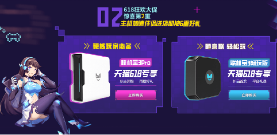 联机宝3畅玩版新品首发,买就送周卡。联机宝3pro冰点价格活动,外加买赠月卡,福利多多哦。此外本次618,奇游次世代主机伴侣产品都参加了京东/天猫平台的跨店满减活动,天猫店铺入店首页免费抽SWITCH、畅玩版、SVIP季卡、大额优惠券,心动不如行动哦。